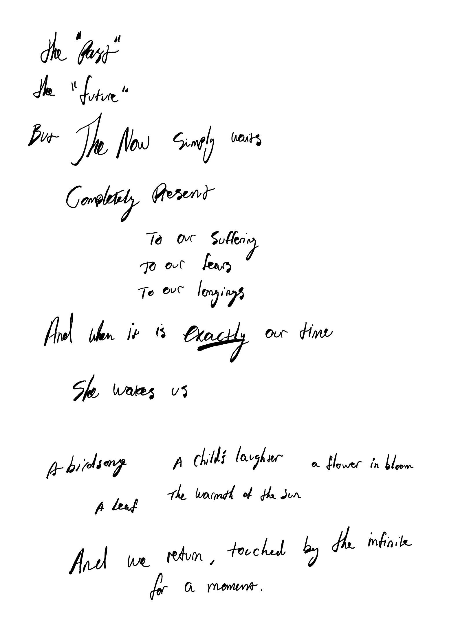 The Now is teaching us with such precision, such focused and intense love, that it allows us to learn at our own pace, in our own time, in our own way.